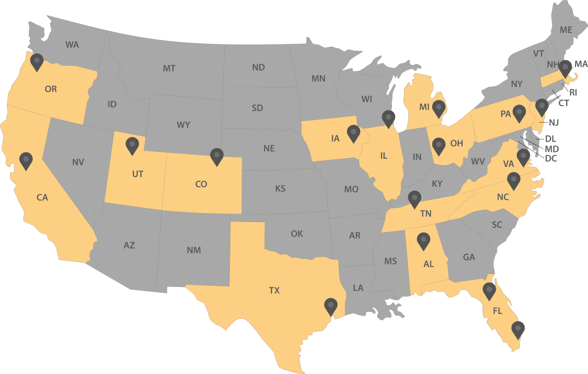 Miami, FLNashville, TNNew Brunswick, NJNorfolk, VAPark Ridge, ILPhiladelphia, PAPortland, ORSacramento, CASalt Lake City, UT